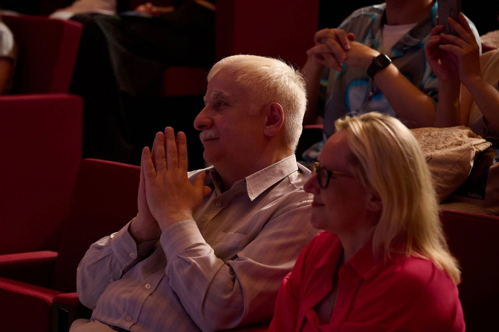 Мероприятие стартовало с того, что выпускники поздравили МГИК в лице и.о. ректора Дмитрия Сергеевича Сидорова с 95-летием и вынесли торт со свечой.